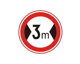 限制寬度標(biāo)志表示禁止裝載寬度超過標(biāo)志所示數(shù)值的車輛通行。此標(biāo)志設(shè)在最大允許寬度受限制的地方。以圖為例:裝載寬度不得超過3米。