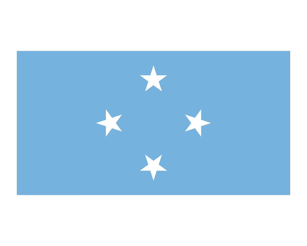 密克羅尼西亞聯邦(The Federated States of Micronesia),位于中部太平洋地區,屬加羅林群島,首都帕利基爾。密克羅尼西亞聯邦國旗呈長方形,長與寬之比為19∶10。旗面為淺藍色,中間鑲有四顆白色五角星。淺藍色象征該國遼闊的海域,四顆星分別代表該國的四個州:科斯雷、波納佩、特魯克、雅浦。