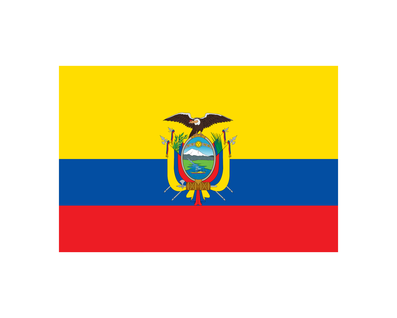 厄瓜多爾共和國(The Republic of Ecuador),簡稱厄瓜多爾,位于南美洲西北部的國家,首都基多位于皮欽查火山的山麓。厄瓜多爾國旗呈長方形,長寬之比2:1。旗面由黃藍紅三個長方形相連組成。黃色占旗面的1/2,紅藍各占1/4。中央繪有國徽。黃色象征國家的財富,陽光和糧食;藍色象征藍天,海洋和波瀾壯闊的亞馬孫河;紅色象征為自由和正義而戰的愛國者的鮮血。
