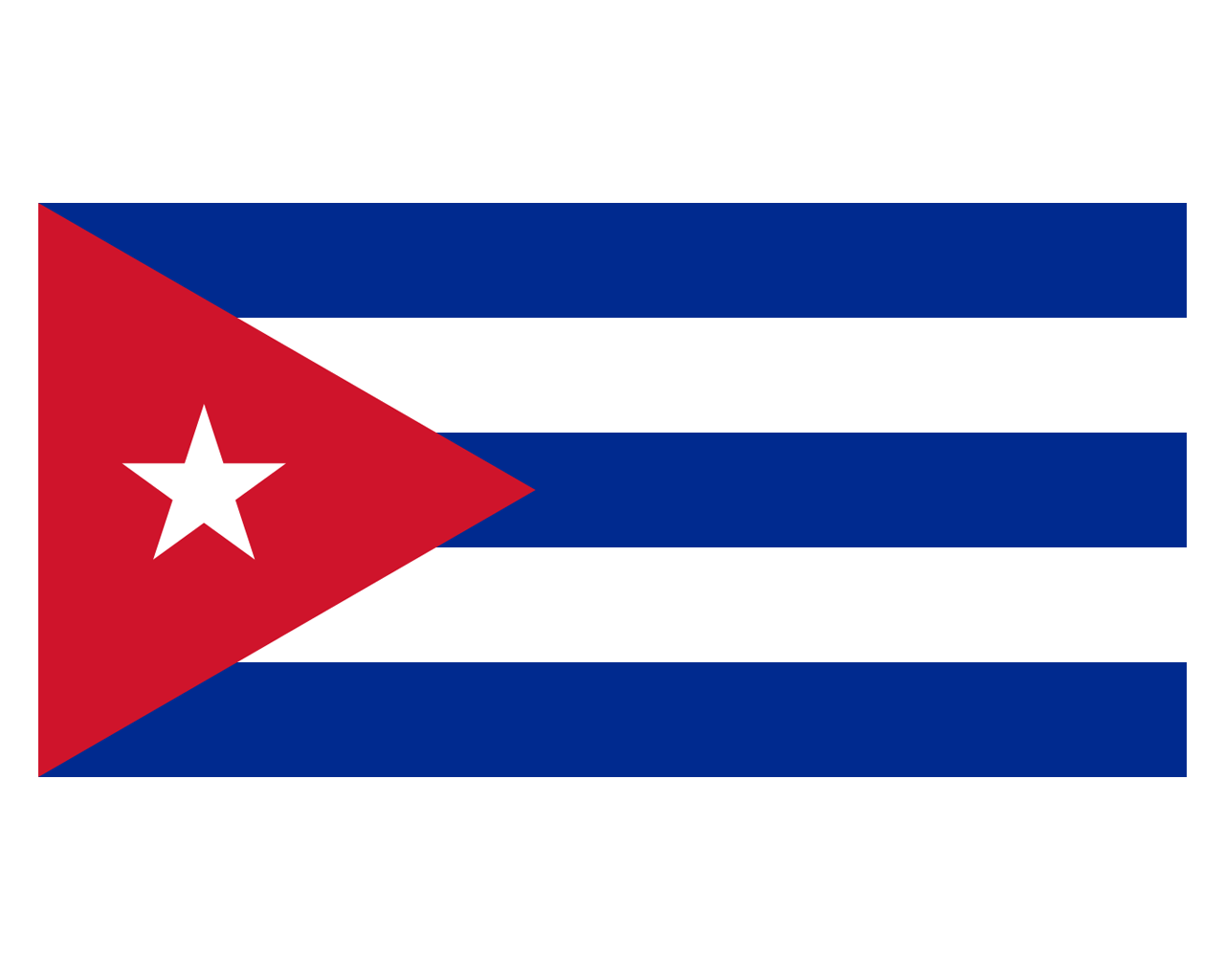 古巴共和國(The Republic of Cuba),簡稱古巴。國名源自泰諾語“coabana”,意為“肥沃之地”、“好地方”。是北美洲加勒比海北部的群島國家,哈瓦那是古巴的經濟、政治中心和首都。古巴島是大安的列斯群島中最大的島嶼,被譽為“墨西哥灣的鑰匙”。古巴島酷似鱷魚,又被稱為“加勒比海的綠色鱷魚”。古巴國旗呈橫長方形,長與寬之比為2∶1。靠旗桿一側為紅色等邊三角形,內有一顆白色五角星;旗面右側由三道藍色寬條和兩道白色寬條平行相間、相連構成。三角形和星原是古巴秘密革命組織的標志,象征自由、平等、博愛和愛國者的鮮血。五角星還代表古巴是一個獨立的民族。三道藍色寬條表示未來的共和國將分成東、西、中三個州;白條表示古巴人民在獨立戰(zhàn)爭中懷著純潔的目的。
