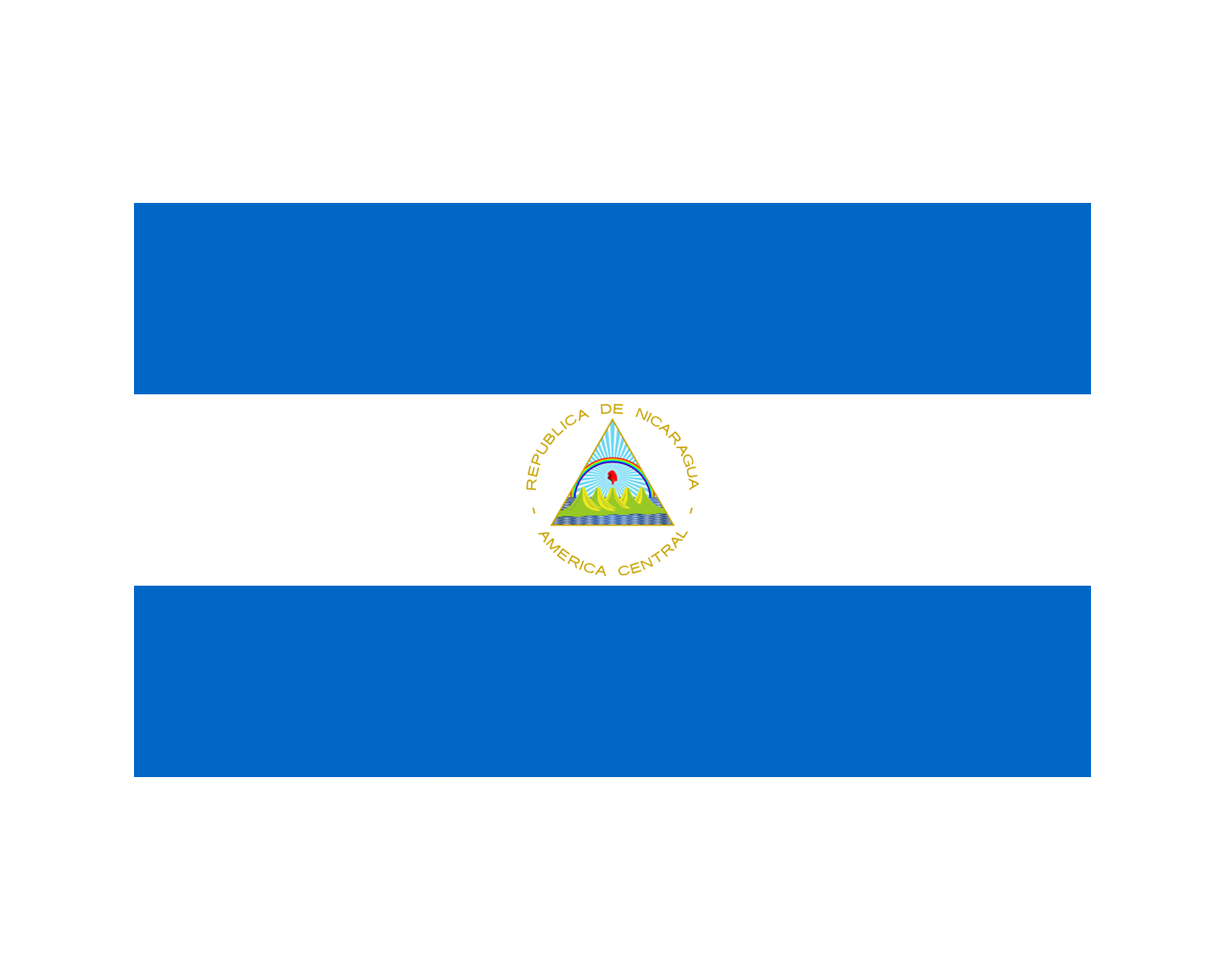 尼加拉瓜共和國(guó)(英語(yǔ):The Republic of Nicaragua),簡(jiǎn)稱(chēng)尼加拉瓜,是一個(gè)總統(tǒng)共和制的國(guó)家,位于中美洲中部,首都為馬那瓜。尼加拉瓜國(guó)旗啟用于1971年8月27日,國(guó)旗呈長(zhǎng)方形,長(zhǎng)寬之比為5:3。旗面自上而下由藍(lán)白藍(lán)三個(gè)平行相等的長(zhǎng)方形組成。中央繪有國(guó)徽。國(guó)旗顏色來(lái)源自原中美洲聯(lián)邦國(guó)旗,也象征這個(gè)國(guó)家在太平洋和加勒比海之間的地理位置。
