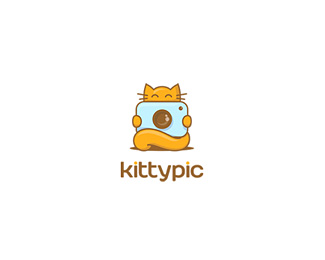 KITTYPIC兒童攝影標志,以元素“貓”和“相機”組合的創意圖形。
