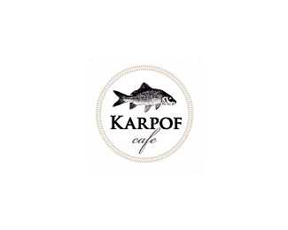 KARPOFCAFE咖啡廳標(biāo)志設(shè)計(jì),使用鯉魚的形象作為識(shí)別元素,整體的標(biāo)志是一個(gè)圓形。