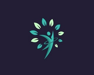 很抓眼球的一個LOGO圖形設計,使用了葉子、人形、環形等元素,整體以綠色為主識別色,應用于健身美體機構的標志設計。