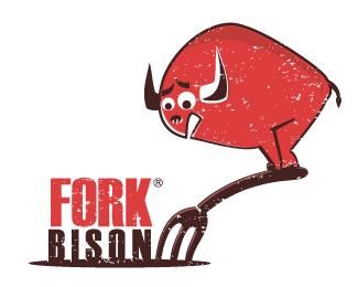 叉上的野牛是一個移動應用程序、文字游戲。需要一個有趣和幽默的標志,幾乎是一個笑話是一個異想天開的、有趣的、卡通的、令人難忘的標志。