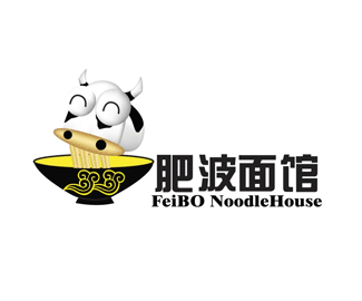 多種色彩混搭在一塊作為主基色,配以極富幽默性質的奶牛吃面畫面圖形,猶如置身于肥波面館中,盡情地享受著面條帶來的美味佳肴;淺金色的碗內圖形,