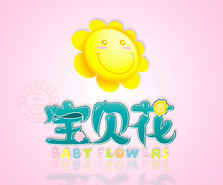 把名稱中的花創意變形為一朵帶有微笑的向日葵造型,具有很強烈的親和度,易于接近消費群體。小型花朵嵌入字體之中,代表著希望、新生力量。字體設計亮麗、柔和,符合寶貝花的主題