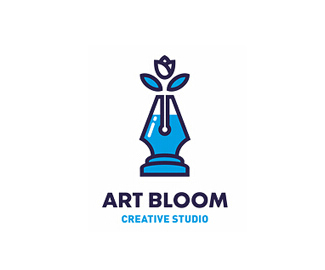 工作室logo設計使用鋼筆和花組合,充滿神秘的藍色體現了創意感。