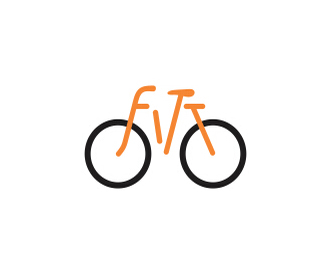 自行車配件店的標志以形象的字母fitt設計,體現公司的名稱,同時組成自行車的圖案,標志簡潔形象。