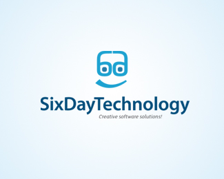 六日科技公司標志設計以數字“6”做對稱設計組合成一對眼鏡(眼睛),再搭配一個笑臉,整體感覺比較卡通,相對于科技公司來說比較輕松愉快。