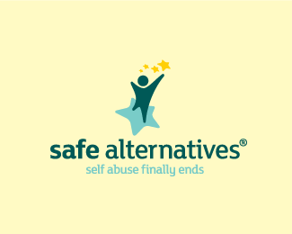 safe alternatives安全替代品標志設計欣賞,使用人形和星形構成該標志的主識別圖形,整體以綠色、藍色、黃色為主色調。