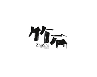竹石書法字體設計,應用毛筆的筆觸呈現“竹”、“石”、“房”的意境。