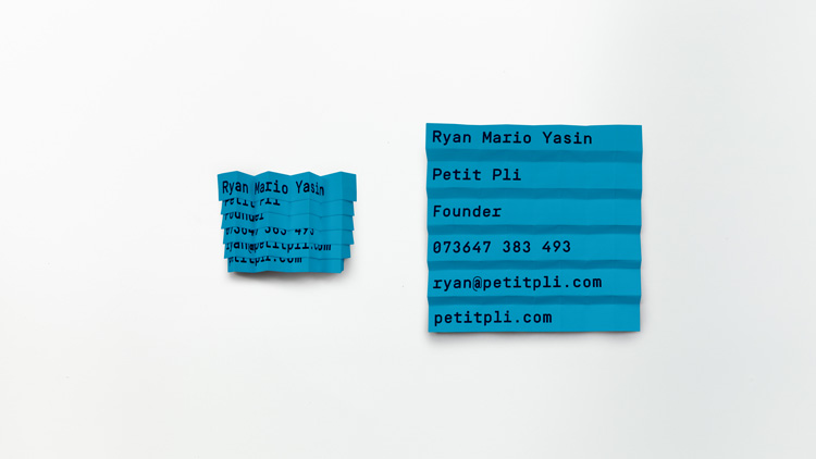 NB工作室為Petit Pli設計的服裝vi設計中logo設計反映了材料折疊后的協奏曲形狀,并由一個錯位的單詞標記組成。