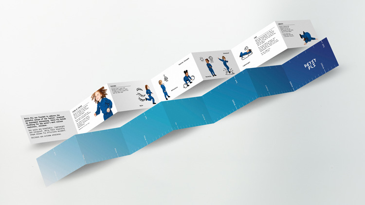 PetitPli彈性兒童服裝品牌設計策劃中公司的整體品牌定位基于四個主題:可持續性、時尚、兒童和空間,因為公司創始人是一名航空航天工程師,并將這些知識運用到服裝結構中。