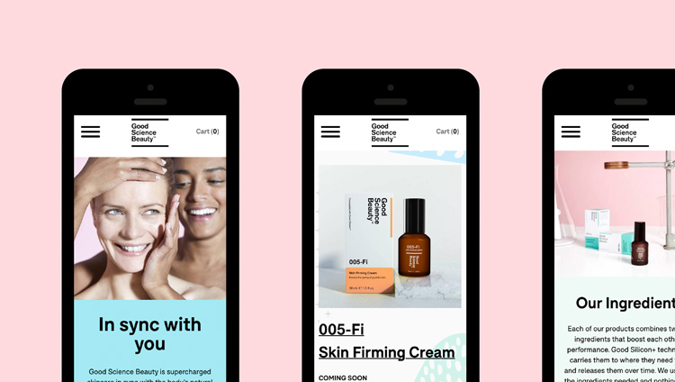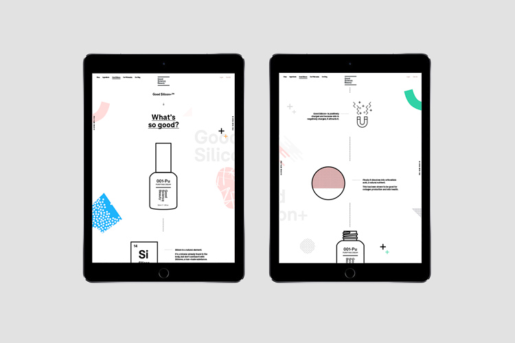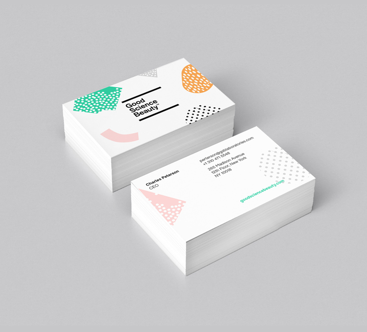 品牌形象塑造的出發(fā)點(diǎn)是彰顯“中性”和“平易近人”的氣質(zhì)。Good Science Beauty的品牌推廣設(shè)計(jì)已經(jīng)擴(kuò)展到商品和包裝、廣告海報(bào)、vis設(shè)計(jì)指南和名片等印刷材料,以及整個網(wǎng)站和社交媒體平臺的線上。